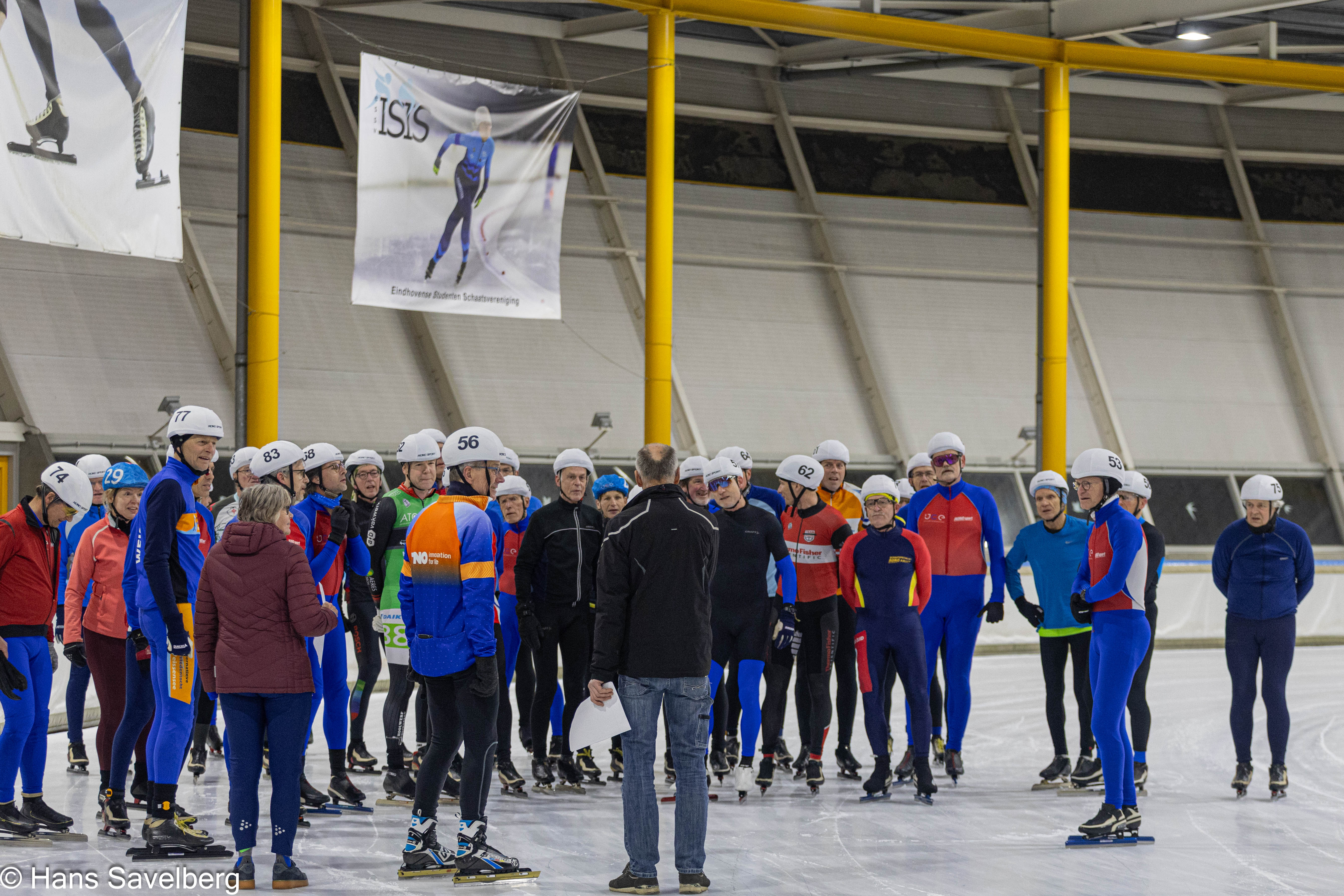 Als laatste groepen kwamen de heren (neo)senioren en masters tot 55 aan bod. De neo(senioren) lieten al snel merken wie er wel eens een marathon reed en twee rijders gingen er vandoor en bleven doorgaan. De achtervolgende neo-senioren konden niet meer bepalen wie er voor de 3e plaats reed, en vanuit de toren mogen we dat natuurlijk niet verklappen. We konden alleen de kanshebbers aanmoedigen. Ook hier werd het uitbellen van teveel gedubbelde deelnemers anders ingedeeld om deze strijd niet te storen. Ondertussen vochten bij de masters Jos en Joep om de eerste plek, waarbij Joep al met 1-0 achter stond omdat hij bij de eerste bocht onderuit ging. De strijd begon met 8 mannen, dat werden er al snel vijf, daarna werd het chaotisch, waardoor de bel nodig was om de meerijders te laten afvallen uit de grote groep rijders. Jos liet de laatste ronde zien waarom hij een marathon nummer heeft en liet Joep achter zich. Martijn finishte als derde. Bij de neo(senioren) won Jens, met Bavo op plek twee en Lars op plek drie.