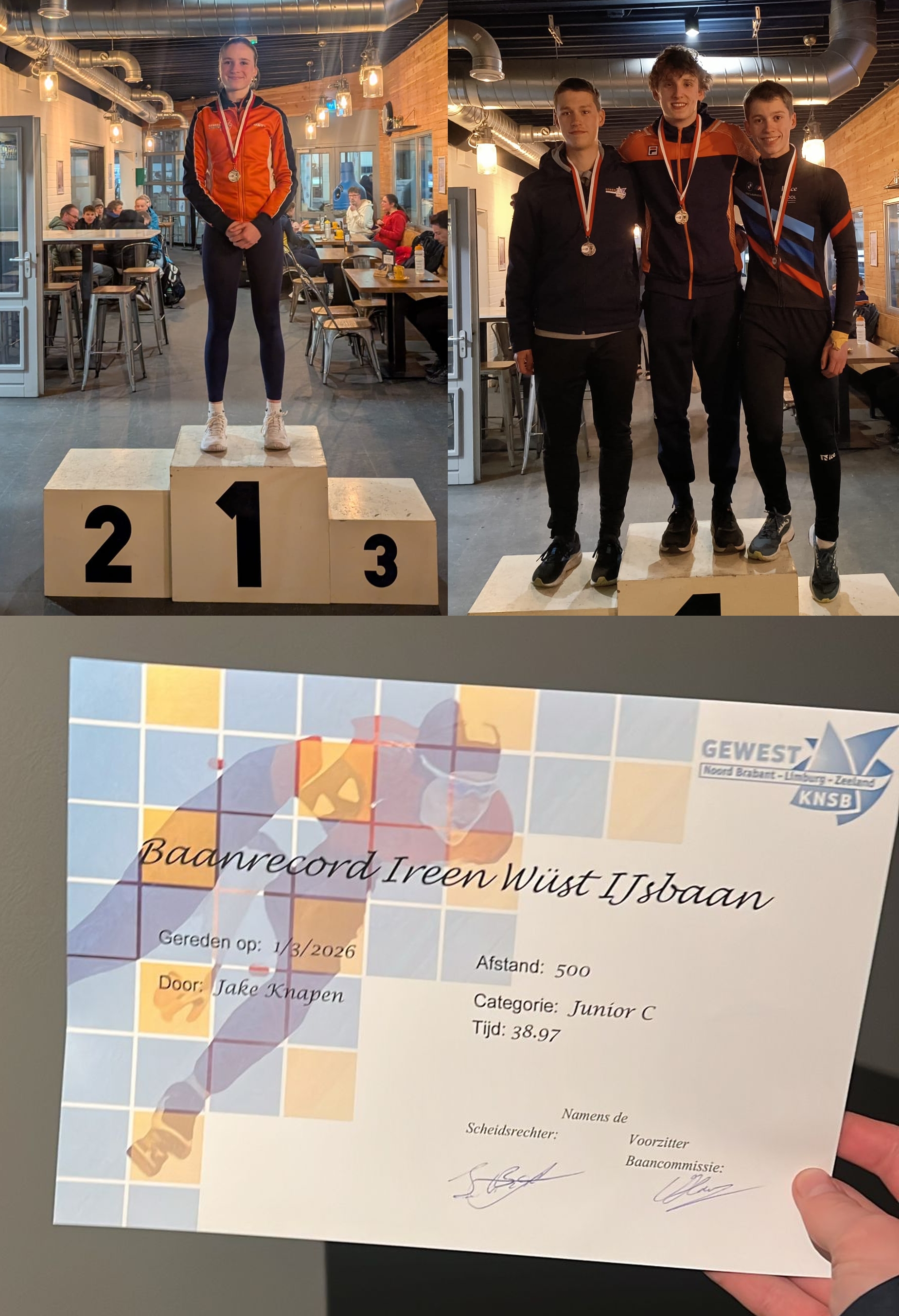 In Tilburg bleek de ambitie van Jake om ook daar het baanrecord 500m junior C in handen te krijgen binnen zijn mogelijkheden te liggen. Met 38,97 staat deze nu officieel op zijn naam!